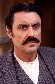 Ian McShane as Al Swearengen, proprietor of the Gem saloon, casino and brothel in "Deadwood," will likely get a Golden Globe Award for Best Dirty Talker by a Male in a Television Drama. Most of the words he uses are the ones usually seen on the stalls of public restrooms. Flippancy shouldnt be inferred here, however, because McShane just may well be the best damned villain to ever walk in front of a camera. Anyone who can upstage Ben Kingsley, in a much smaller movie role, must have something going for him. That film was "Sexy Beast." For my money, McShane, as the cruel London mob boss, came off meaner than any no good polecat Ive ever seen in any kind of motion picture. Winner of the Dirtiest Talker Globe for a Woman will likely be Robin Weigert. She has the historical role of Calamity Jane, whos last resting place is Deadwood, South Dakota, right next to Wild Bill Hickok. Whether they really had a relationship or an acquaintance is not really clear. Keith Carradine, playing Wild Bill himself, is cast just right as the hard drinking, poker playing, former marshall of Abilene, Kansas who wore his six-shooters with the handles pointed forward. Carradine comes in third for vulgar use of language in "Deadwood." Both he and McShane should win some kind of shiny statue for having such great, deep voices. The woofers on my sound system rattle when these gentlemen speak from the soundtrack. Less inclined to curse is the supposed hero of "Deadwood." Seth Bullock (Timothy Olyphant), another real life figure of the era, who, in the late 1870s, ultimately became marshall of this town for which there were yet no laws. After marshalling over in Montana, Bullock came to Deadwood to start up a hardware store with his partner Sol Star (John Hawkes).